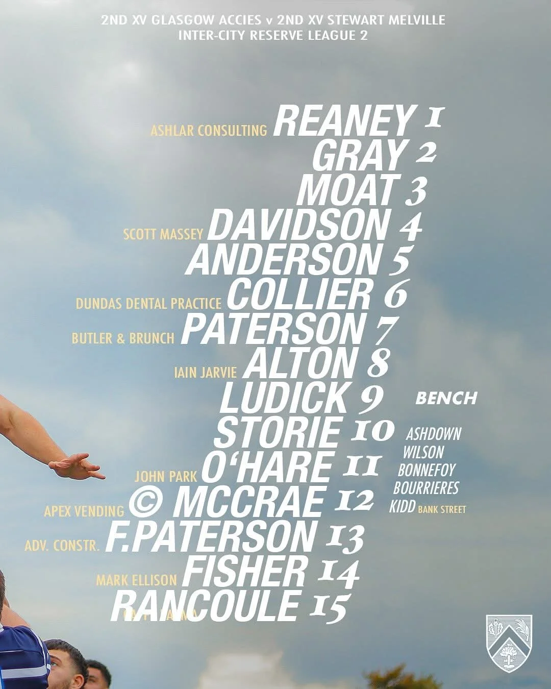 Our second team line up for tomorrow! Our 2nd XV will be heading to Stewart Melville. The squad is looking for their third consecutive win in the Reserve League. #cmonaccies